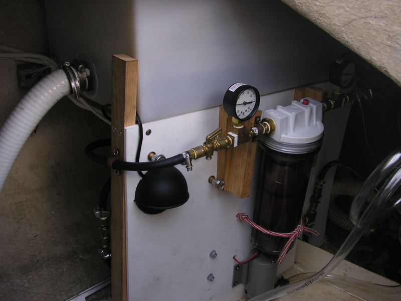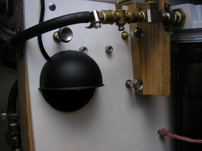 I mounted the parts on starboard attached to the frame that I installed our holding tank on.