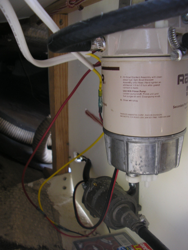 The photo below shows the Racor fuel/water separator and the Walbro fuel pump.