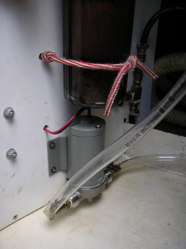 Below is a close up photo of the Fuel transfer pump (and the hold down strap for the sediment filter)